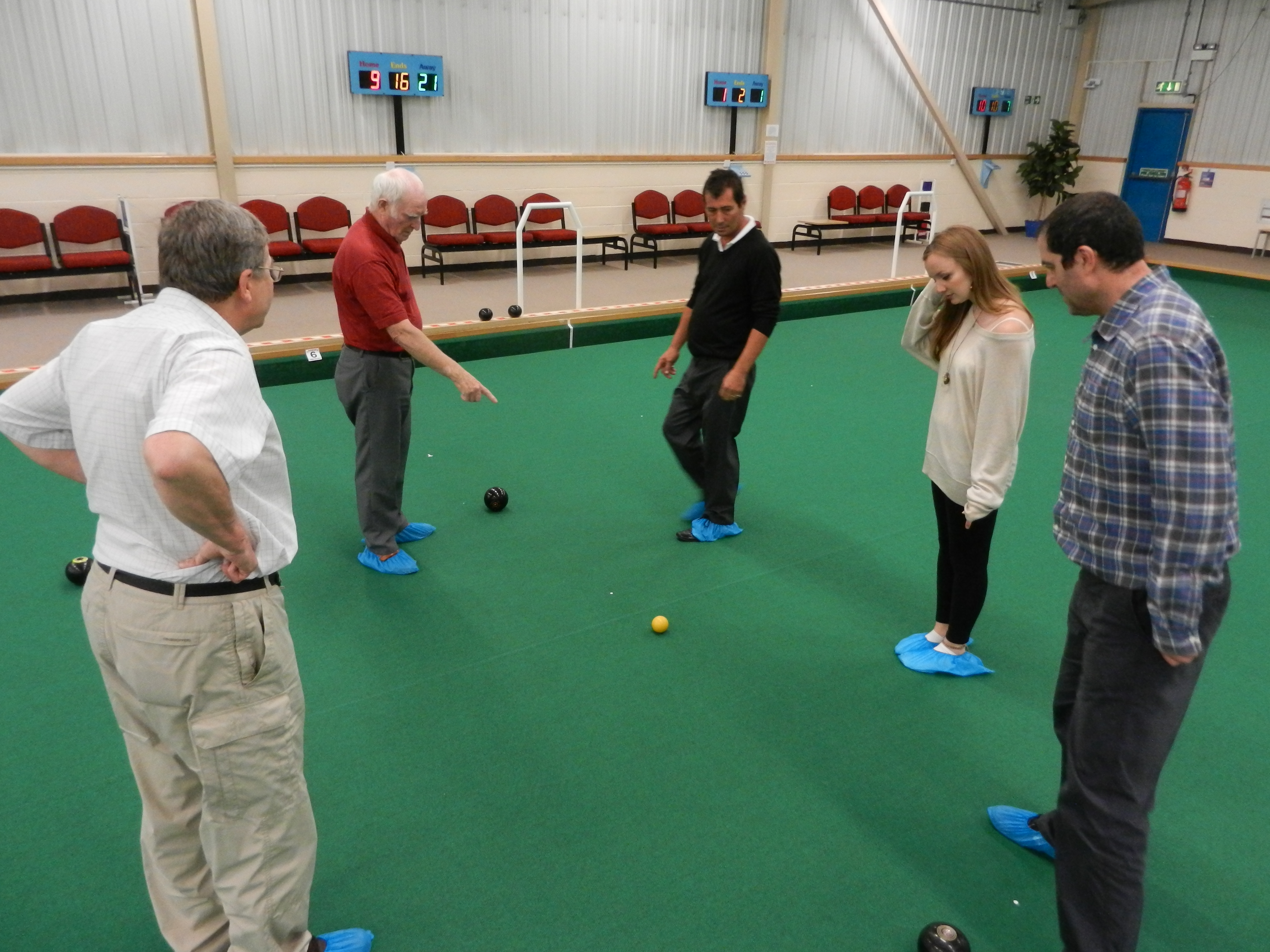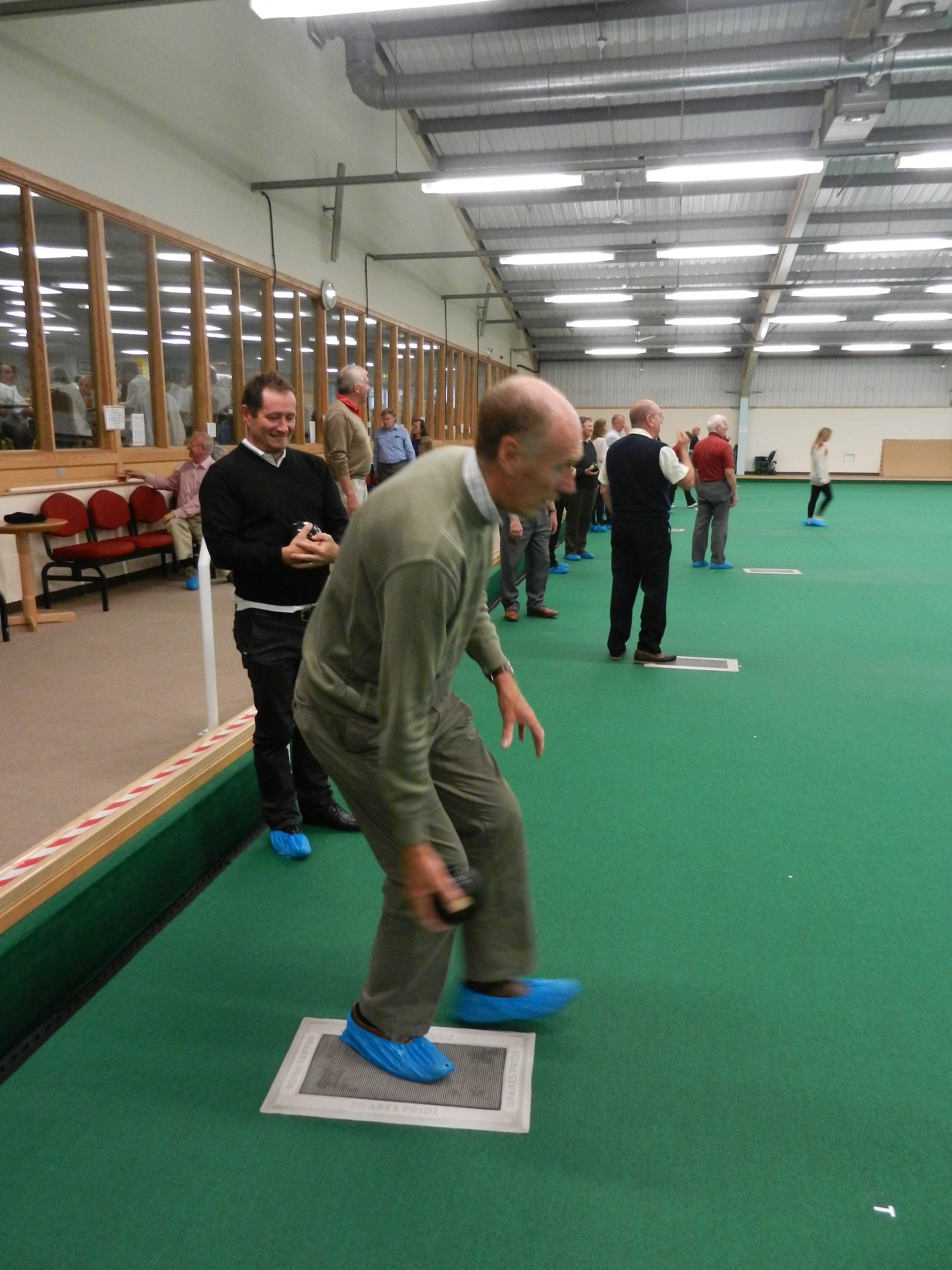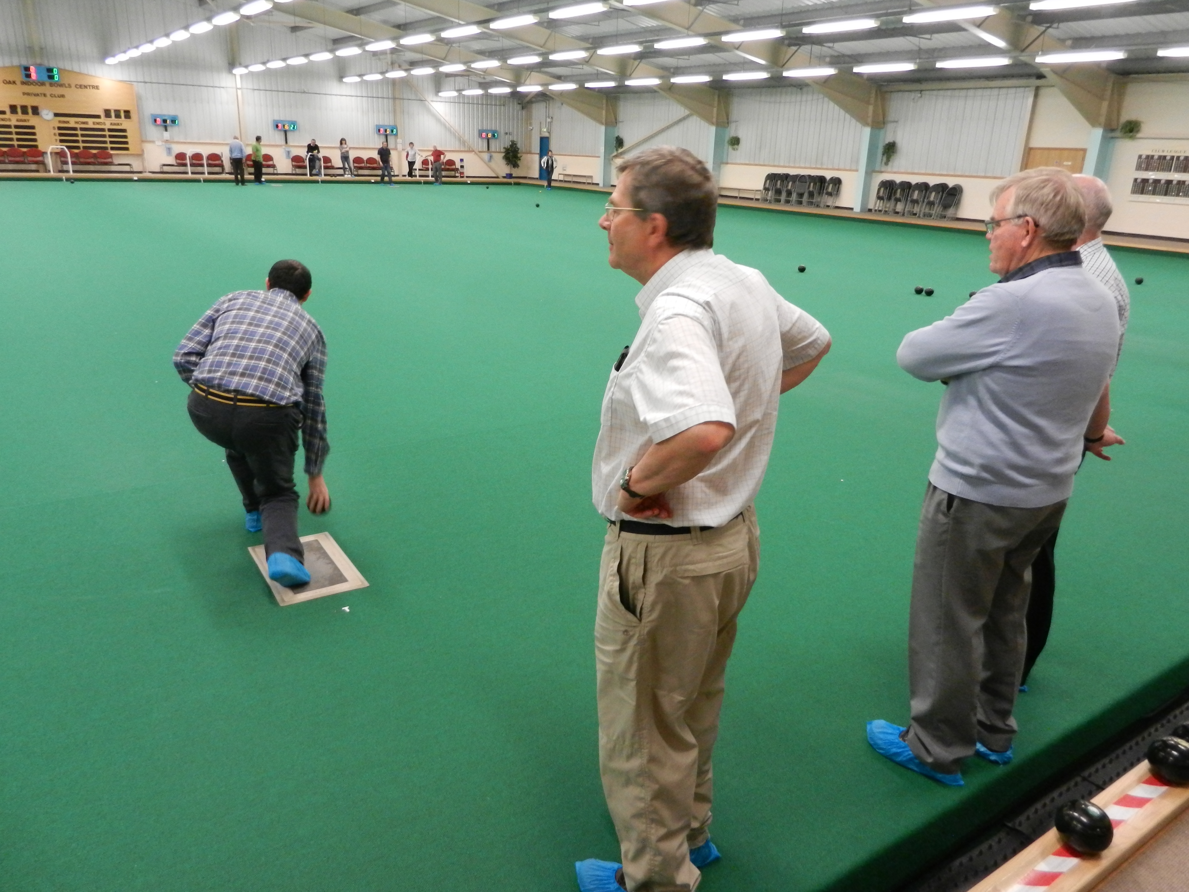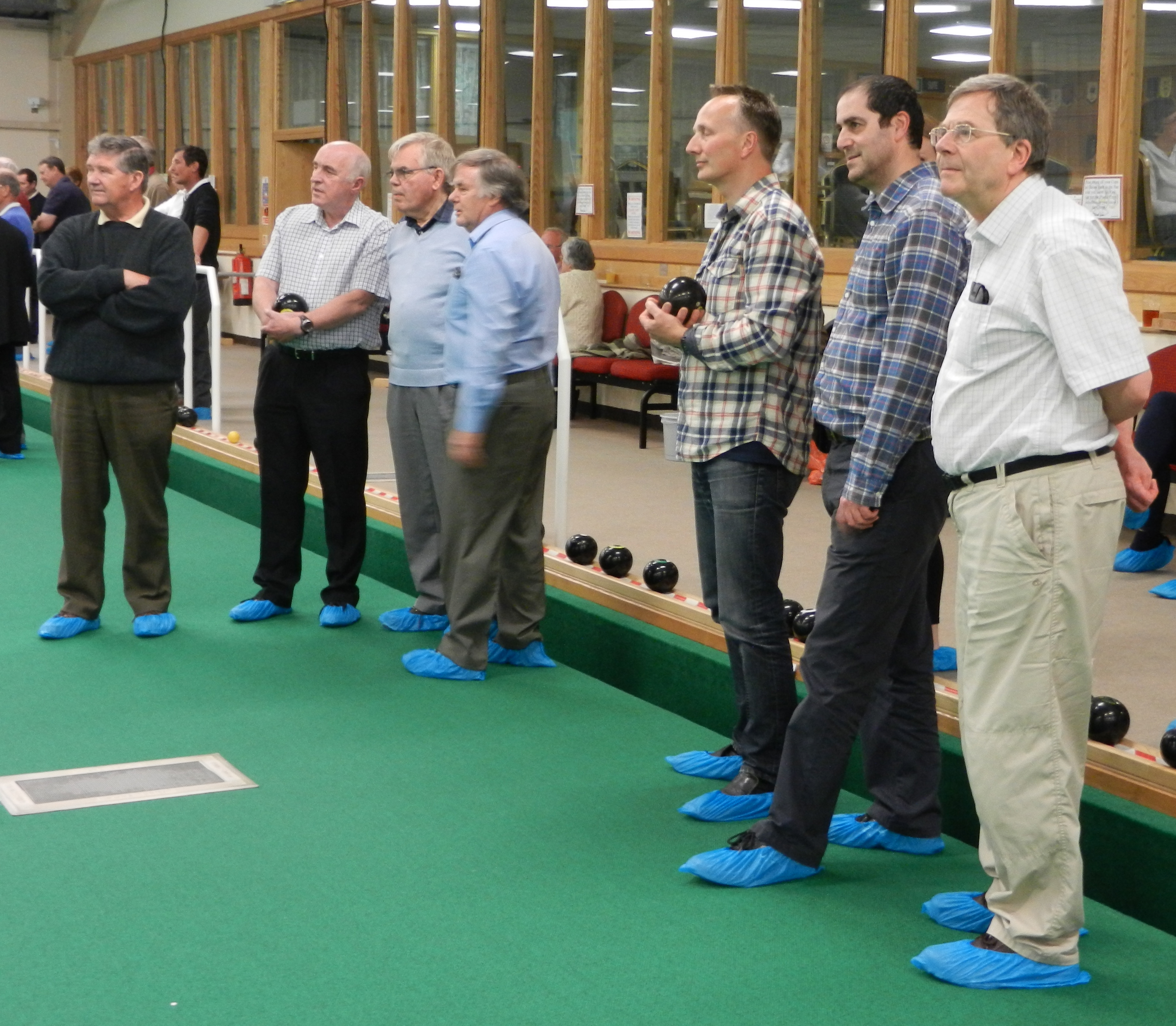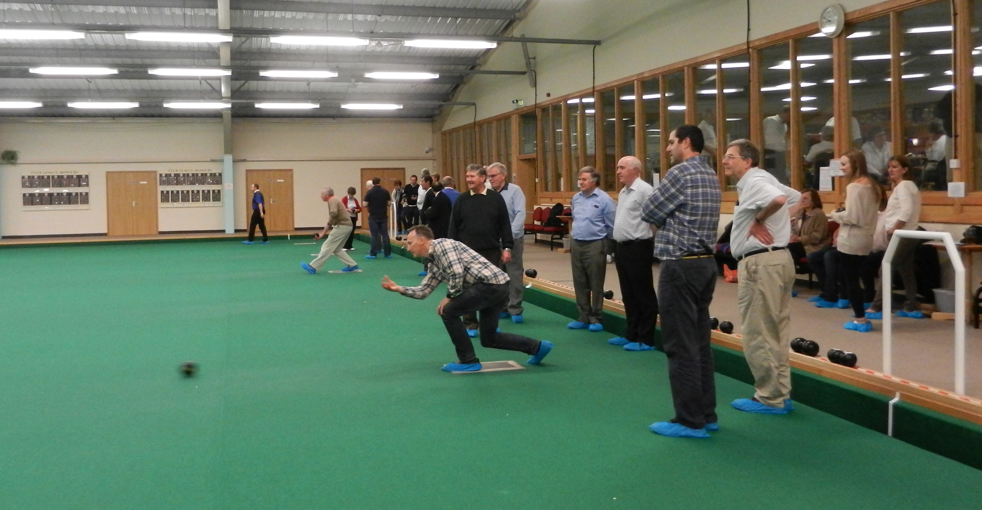 in a good, and possibly 'winning' position. Meopham bowled and knocked a Swanley bowl away leaving the outer bowls in play. A tape measure and deep scrutiny revealed Meopham scored two - with just an INCH in the difference between a bowl from each team, deciding the winner of that 'end', 2 points to Meopham!